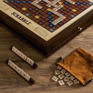 This exquisite Heirloom Edition is designed to satisfy the Scrabble enthusiast who enjoys the finer things in life. The rich walnut cabinet features a drawer to neatly store all of the game components. This edition also includes custom-designed tiles, solid wood tile racks, faux suede tile pouch, scorebook, and a sand
