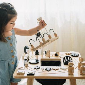What could possibly be more awesome than our all new Awesome Activity Table? It’s loaded with lots of fun stuff including 3 removable stacking toy animals, a mirror a shape sorter puzzle,  train set, and so much more.  The center maze pulls up to reveal a cotton storage bag to keep things tidy.  Legs screw…