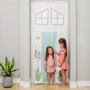 Mini hosts are ready to welcome guests to their Malibu House vacation rental. This Storefront is easy to hang, and takes up almost no space to inspire hours of pretend play. The two charming, illustrated sides—cacti and modern styling—are printed on thick, sturdy, poly-cotton canvas. Printed on both sides with two diff
