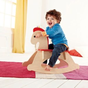 This perfectly-balanced ride-on can take kids for a slow-and-steady trot or a rocking gallop. The backrest can be lowered when your toddler is ready to rock and ride on their own. Long-lasting toy your child will love for years to come. A guardrail helps babies from 10 months+ stay in place and can be removed…