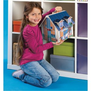 Enjoy some fun on the go with the Take Along Dollhouse. This take-along case with latch opens up to reveal a spacious two-story house with four fully-furnished rooms. Gather around the table for a home-cooked meal in the fully-equipped kitchen, complete with pots and pans, food, dishes, and more. Relax on the couches a
