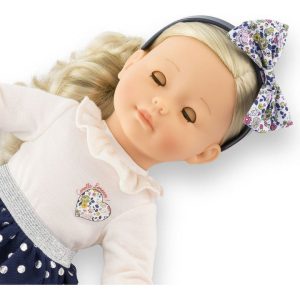 Constance Ballerina is dressed for ballet class with her friends. Constance is 14-inches tall, has a soft body and silky blonde hair that is styled in a ballerina-perfect topknot. Her head, arms and legs are made of soft-to-the-touch vinyl that is delicately scented with vanilla — a Corolle signature, and her blue sle