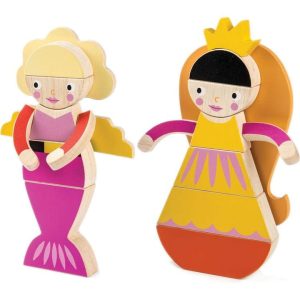 Are you a princess or a mermaid, or a fashion conscious girl? Double sided and printed onto solid rubber wood, in pretty contemporary colors, these 15 pieces will make up 4 combinations of differently dressed girls! We have even added a lovely printed drawstring bag. For ages 3 years & up material: wood Care instru