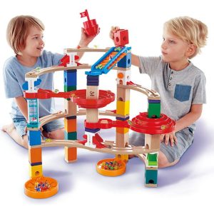 The Hape Quadrilla Super Spirals Wooden Marble Run Construction Building Set is a great way for the whole family to play and learn together. This marble run construction set is an excellent STEAM toy for helping your child develop their imagination, problem-solving skills, counting, color identification, spatial and re
