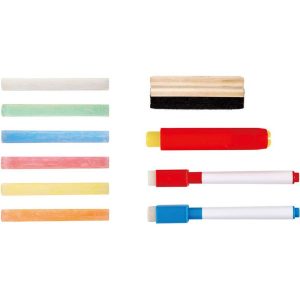 Get your little artist creating with our Easel Does It!  Our wooden easel sits neatly on the floor, and comes with a paper roll, 4 giant circle magnets to hold papers on to the magnetic chalkboard, and 3 paint cups. Flip sides, and you have a dry erase board.  Cup holders and shelf fit easily…
