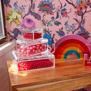 Bring shine and happy vibes to any room with our RAINBOW stand-alone. The vibrant colors are mirrored for extra polish and pop! Material Content: Acrylic Care/Wash Instructions: Wipe Down PLEASE NOTE: this item does not qualify for free shipping. Due to item size/weight there is a shipping fee associated with this item
