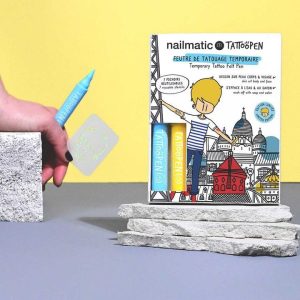 The Tattoo pen New York duo set by street artist Jo Little will take you on a journey ! This set is a limited edition that was created in collaboration with the Parisian artist. This kit contains two Tattoopen markers, one pink and one green, and a sheet of 7 reusable stencils to dive into…
