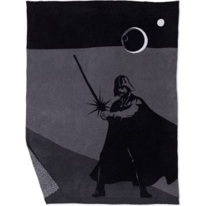 This powerful minimalist portrait features everyone's favorite villain, Darth Vader. Captured in the background is the ominous Death Star eclipsing the sun. Packaged and tied with custom Star Wars ribbon, this item is perfect for gifting in any galaxy. Color: Black Multi Dimensions: 54” x 72”     All Ages 100% Polyeste