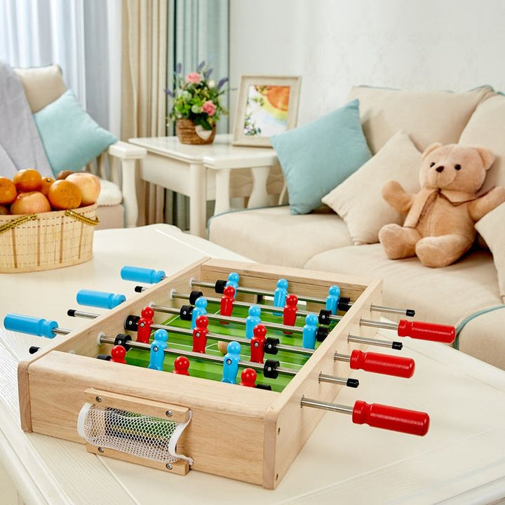 Games for 2! Foosball or Ice Hockey take your pick with this 2 sided table top game designed for fun, improves fine motor skills, concentration, co-operative play and logical thought. Ages 3+ Materials: Wood, Steel Care instructions: Wipe with damp cloth, air dry; do not immerse in water PLEASE NOTE: This item is exclu
