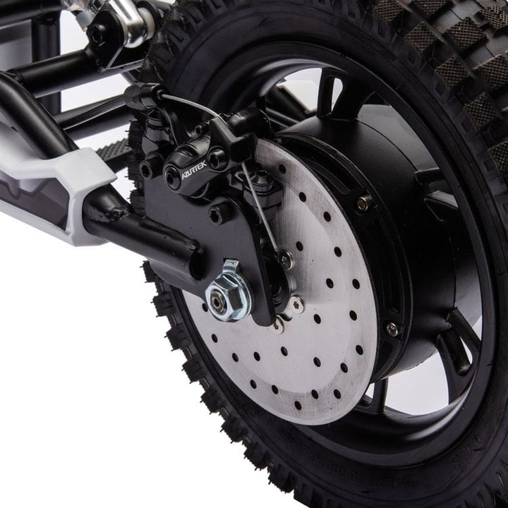 The Freddo Dirt Bike 36V brings the excitement of dirt biking to young enthusiasts aged 14 and up. Â This electric dirt bike is engineered with a powerful 36V 350W brushless hub motor, capable of speeds up to 25KMH. It's built to handle a maximum load of 80kgs, ensuring it can accommodate most teens comfortably. Â With