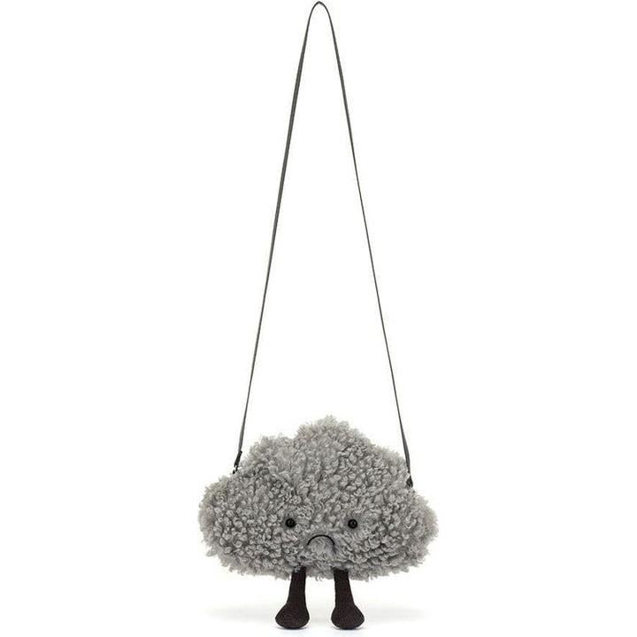 Amuseables Storm Cloud Bag may look a little glum, but it is happy to keep your essentials safe in all weather. In textured grey fur with a stitched frown, this cloud has dark, fine cord boots, and can keep your essentials safe and hands free with a hidden zip closure and a long shoulder strap. Dimensions: 7.9in x 9.4i