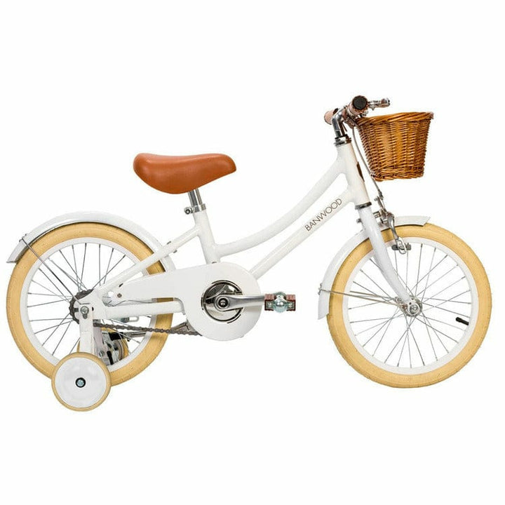 The Banwood Classic, inspired by vintage bicycles for adults and influenced by Scandinavian design. Features a lightweight alloy frame and rosewood Vintage pedals. Your mini me cyclist will be the coolest kid on the block sporting the bike’s brown faux leather saddle and grips in matching colors, cream 16” tires and a