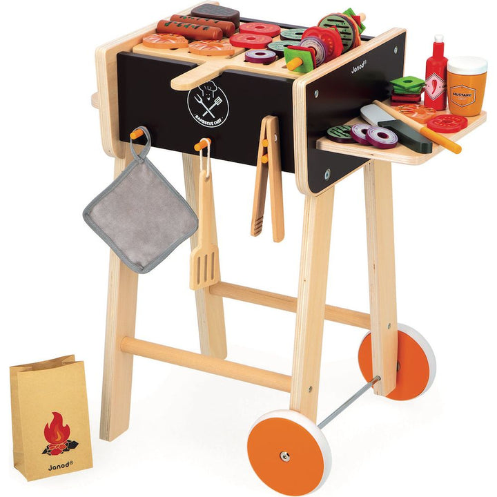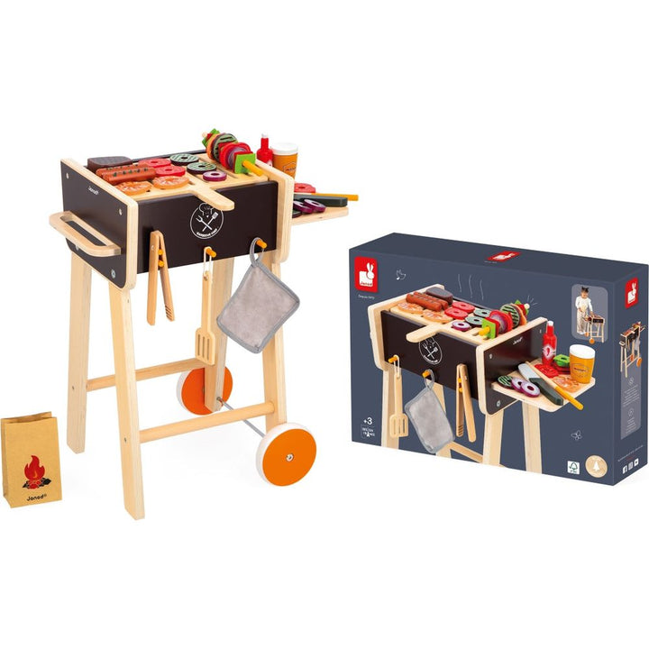 Can you smell the delicious smell of grilled sausages? Meals are sure to be festive with this magnificent wooden barbecue toy, that is very realistic! Children, put on your aprons, you’re the chef! Barbecue evenings, the not-to-be-missed events of the summer, will now be able to take place all year round, orchestrated