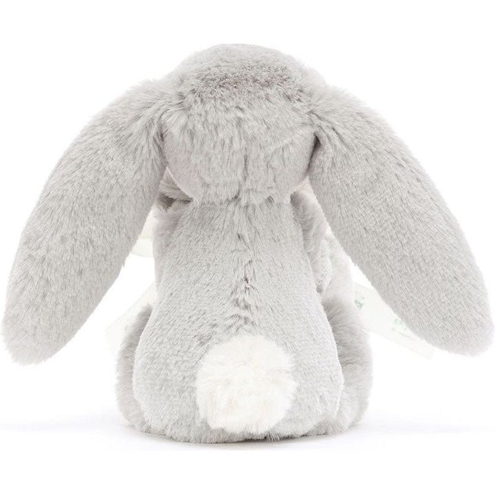 A perfect gift for newborns, the Bashful Bunny Soother is our most loved Bashful Bunny in a soft fur, with long lopped ears, a pink suedette nose and stitched eye detail holding a square shaped soother, un-stuffed and irresistibly soft to touch. Made from recycled fibers and neatly rolled up and presented with a Baby J