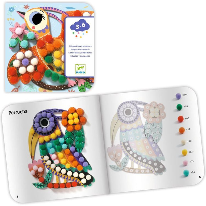 A collage activity to cover the 3 birds with soft bobbles. Following the templates in the instruction booklet, stick the coloured bobbles onto the sticky areas of the 3 shaped boards. Surprise: 3 super-soft birds appear for you to stroke! Contains: 3 bird shapes made of thick card with sticky areas, 200 bobbles to stic
