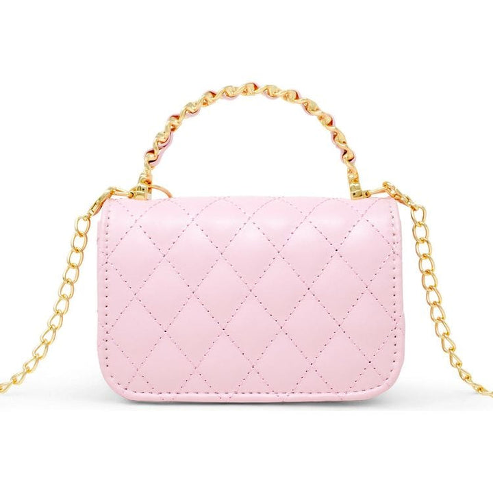 Elevate your little one's accessory collection with this stylish and versatile handbag, perfect for little fashionistas! Designed with a timeless quilted pattern, this bag is both chic and functional. classic quilted exterior Link Chain Handle Magnetic closure Comes with multiple adorable hanging charms Dimensions: 6L