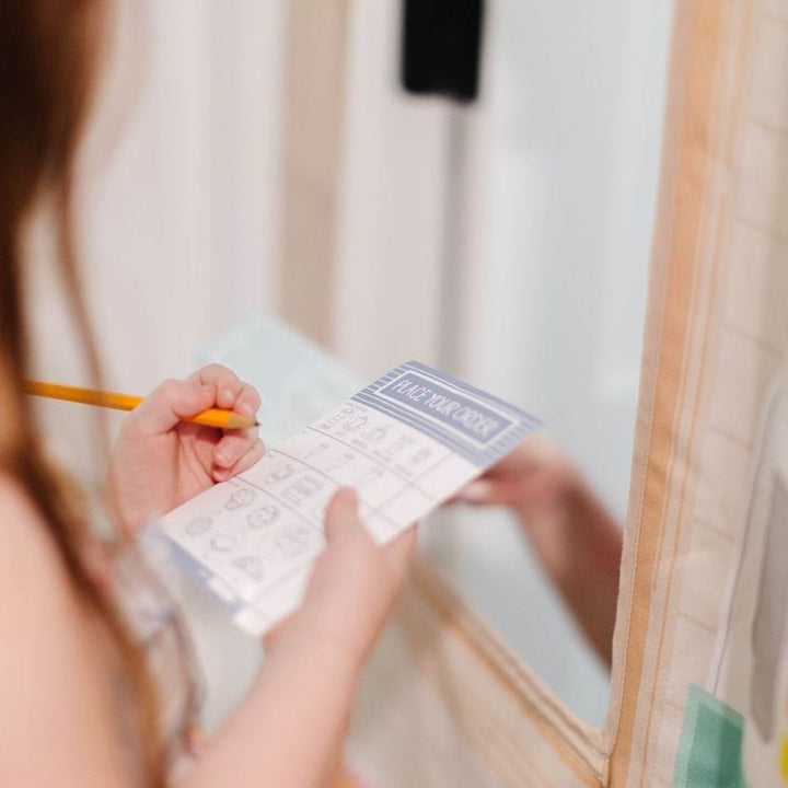 The Coffee Play Shop Activity Set is the perfect blend of fun and creativity for your mini baristas. This notepad arrives prepared for order-taking, complete with a selection of coffee choices and bakery items. What's more, it includes a collection of lively cardstock play pieces, perfect for your aspiring coffee shop
