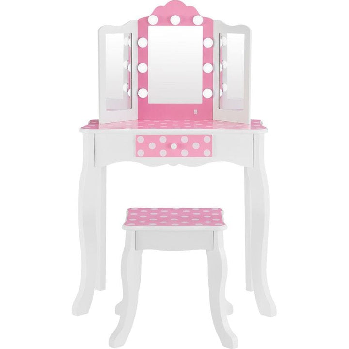 Fantasy Fields Gisele Polka Dot Kids Vanity Table & Stool with LED