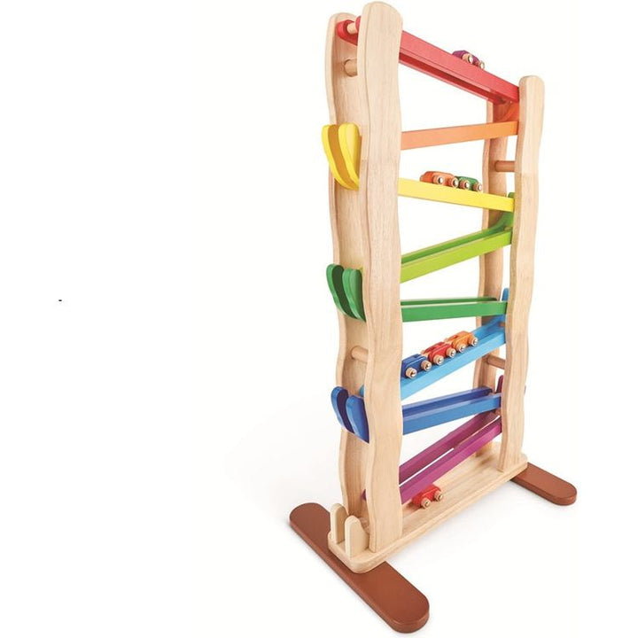 Watch your race cars flip over one another as they come racing down! Make Fast Flip Racetrack a part of your playroom race course. Which of the Race Cars do you think is the fastest Race them all and record the results! Ages 3+ Materials: WOOD, Steel Care instructions: Wipe with damp cloth, air dry; do not immerse in w