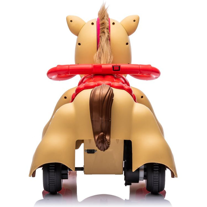 Giddy up with the Horse Ride-On Toy! This 12V ride-on is perfect for toddlers aged 18+ months. It features realistic lights and sounds, adding to the fun. The toy includes a comb and brush for grooming the horse's mane and tail, encouraging imaginative role-play. Lights and Sounds: Features engaging lights and sounds t
