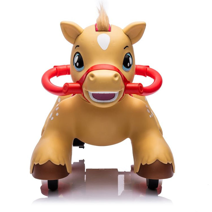 Giddy up with the Horse Ride-On Toy! This 12V ride-on is perfect for toddlers aged 18+ months. It features realistic lights and sounds, adding to the fun. The toy includes a comb and brush for grooming the horse's mane and tail, encouraging imaginative role-play. Lights and Sounds: Features engaging lights and sounds t