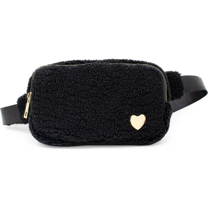 This adorable belt bag features a soft, fuzzy exterior that adds a cozy touch, while the gold heart charm on the front brings a bit of sparkle and fun. Versatile and trendy, this bag can be worn around the waist or slung across the chest as a sling, making it perfect for kids on the go. Whether for a day at the park, a