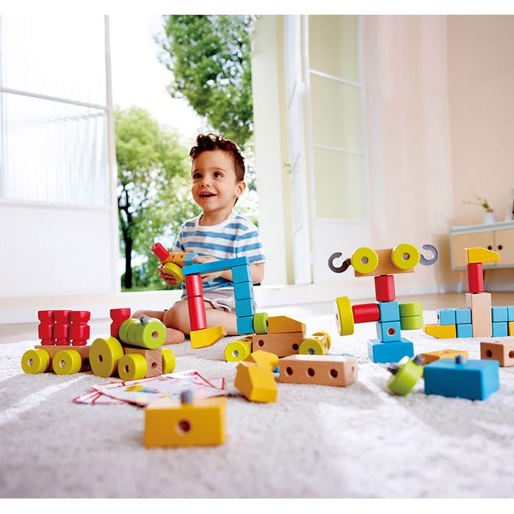 Unleash boundless creativity with our Infinite Imagination Building Blocks. Crafted from high-quality beech wood, these blocks inspire imaginative play, foster fine motor skills, and offer endless possibilities. DURABLE DESIGN: Crafted from a blend of wood and plastic, these blocks feature secure structures, ensuring s