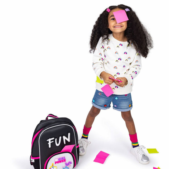 The Starter backpack is perfect for young students ages 3 to 6 yrs old. The bag fits a standard A4 folder when placed to the back of the bag. It does not fit a binder. These featherweight, ergonomic backpacks have sturdy form and structure making them comfortable and stylish! The line expands into sling bags, cosmetic