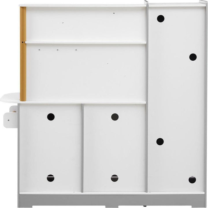 Teamson Kids Little Chef Springfield Play Kitchen is a feature-packed play kitchen with a magnetic refrigerator, stove, sink, and microwave for realistic play. Interactive fun includes an ice dispenser with three pretend ice cubes, color-changing burners, and knobs that turn and click. Stocked with a pot and pan with a