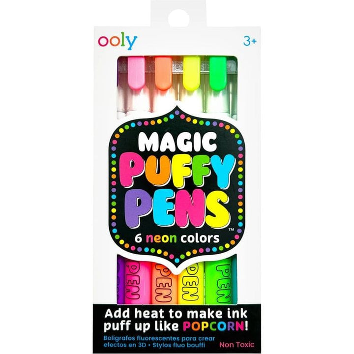 This set of puffy pens is magical—no abracadabra required! In only 60 seconds, the ink from these puffy paint pens will expand out like it’s come alive! This fun spin on 3D art only requires paper, a hair dryer, and these awesome popcorn pens! Designed in neon colors, this set of six non-toxic magic puffy pens are the