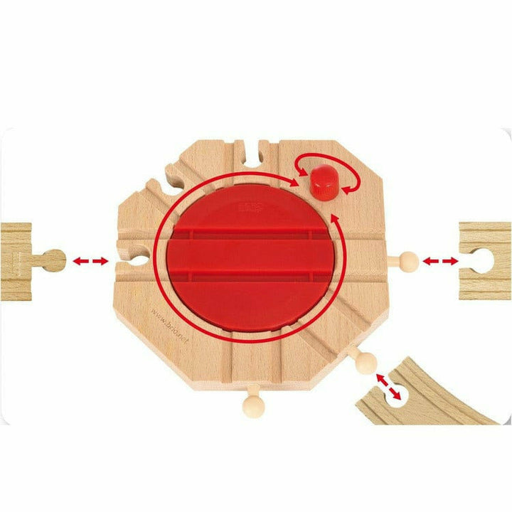 How to turn the train? Try this turntable. It has cogs and you operate it by pushing a button. The foundations to every railway set. Select some extra pieces to extend your current track. The Original Wooden Railway! BRIO created the first wooden railway in 1958. Since then we've built up the world's largest range of w