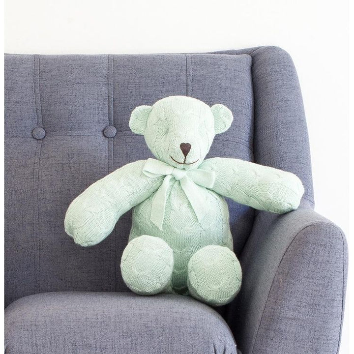 Rian Tricot uses the softest and most durable yarns for their blankets! Their extensive collection of cushions, pillows, and blankets are well-designed with a varying yet complimentary color pallet; each individual product coordinates with others to bring effortless luxury to every nursery. Cable Knit Plush Teddy Bear
