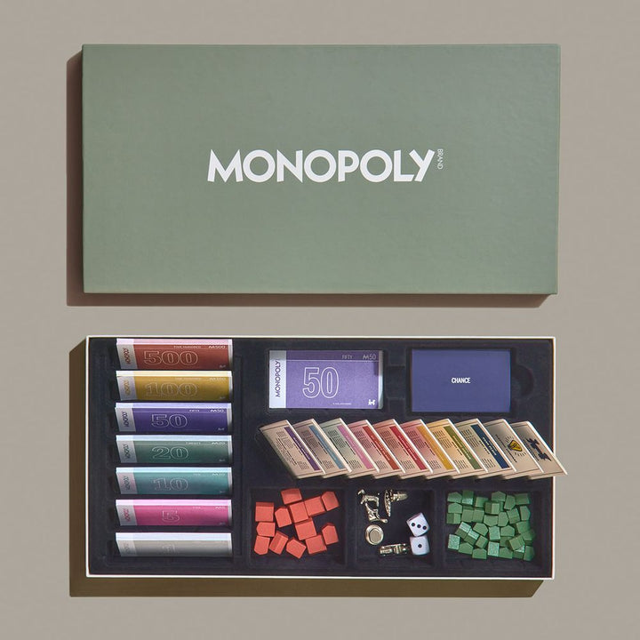 Celebrate family game night with Monopoly, the classic property trading game, in a sophisticated Grand Folding Edition. This beautifully designed wooden game board features a framed rolling area, custom graphics, and a solid wood frame secured with a metal clasp. Inside, you’ll find premium wooden houses and hotels, cu