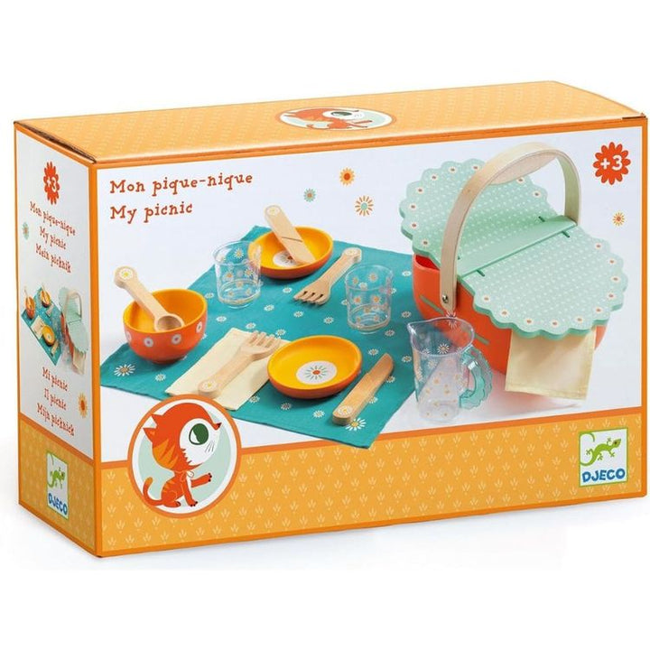 What better way is there to spend a sunny day than with a picnic for two? A basket packed with everything you need to enjoy lunch in the fresh air. All accessories can be stored in the picnic basket Contents: 1 picnic basket made of wood and plastic, 1 picnic blanket and 2 cloth napkins, 5 wooden pieces of cutlery (2 f