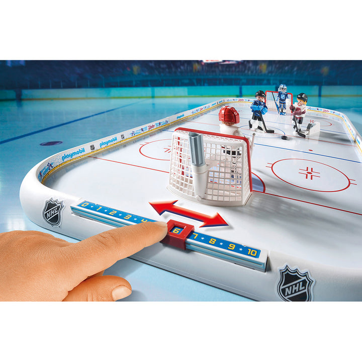 Skate into action with your own hockey match at the NHL® Hockey Arena. Each of the four NHL players feature a movable arm and hockey stick for even more realistic game play. Simply pull back the lever to swing the stick and fire the puck down the rink towards the opposing goal. Use the goalie to defend against offensiv