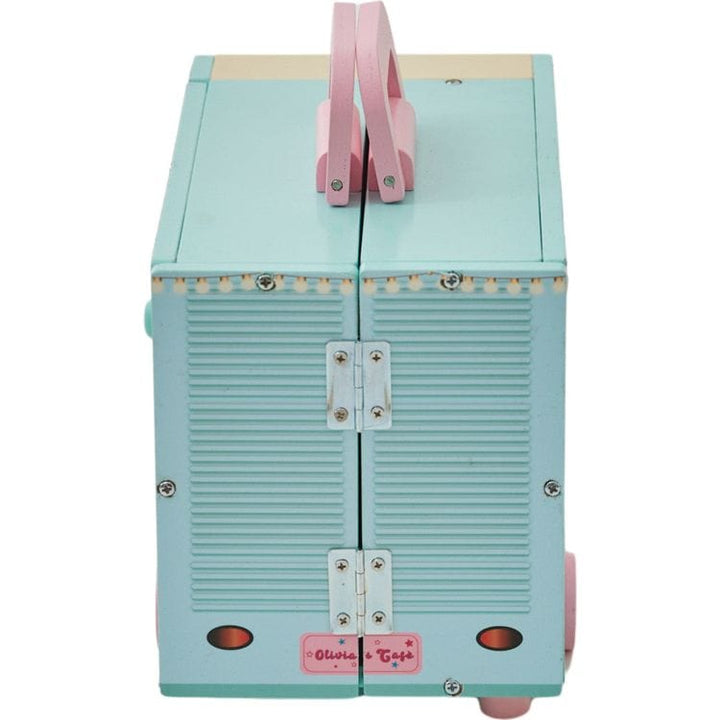 Packing all of the fun of imaginative doll play into one easily transportable wooden toy, this Olivia’s Café Portable Food Truck Dollhouse is for playtime on the go. Including café seating and a mini kitchen for your little one’s 3.5” doll figures, this adorable dollhouse is designed to fully open for hours of imagina