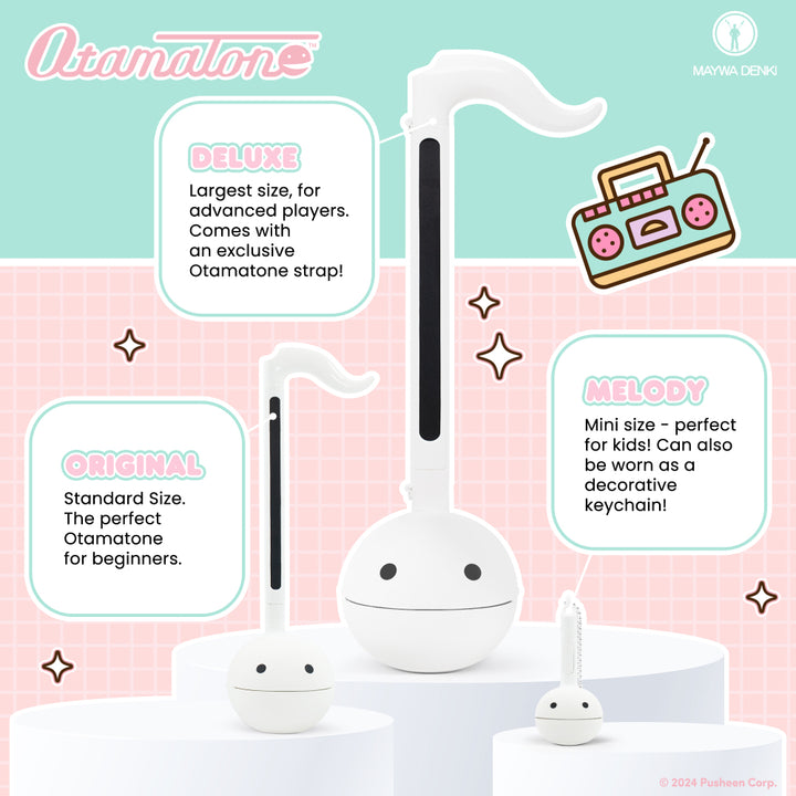 One of Japan’s Best-Selling Musical toys! This super cute Otamatone features an exclusive Pusheen the Cat design! FUN & EASY TO PLAY ♡ Touch or slide your fingers along the stem to vary the pitch and squeeze the cheeks for vibrato. Play in a low, medium, or high pitch – get together with friends and create a harmon