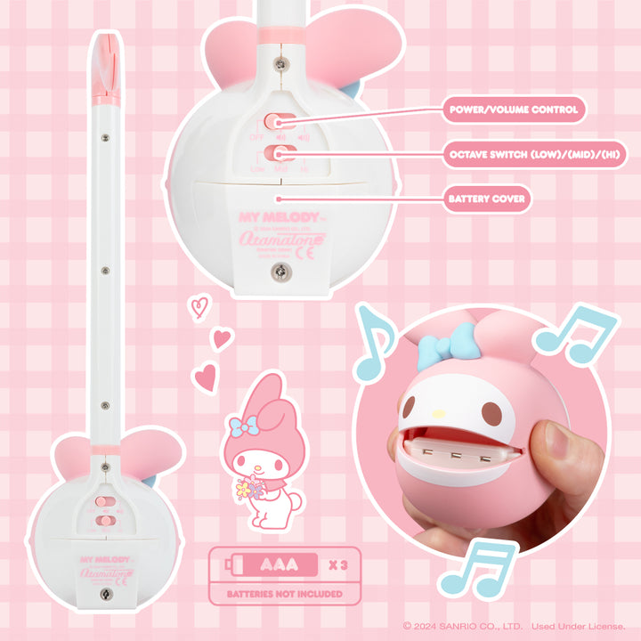 One of Japan’s Best-Selling Musical toys! This supercute new Hello Kitty® and Friends Otamatone features an officially licensed, exclusive My Melodyâ„¢ design! FUN & EASY TO PLAY ♡ Touch or slide your fingers along the stem to vary the pitch and squeeze the cheeks for vibrato. Play in a low, medium, or high pitch – g