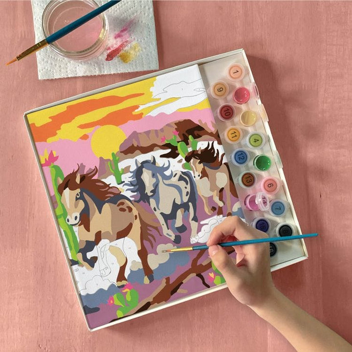 This DIY paint by numbers kit features artwork with wild horses running in the desert. Includes 16 colors of paint and 2 detail brushes. Tray pulls out to become your work station. Learn facts about this threatened amphibian in our instruction guide. This kids paint by number kit features a deep 1.25" canvas that can h
