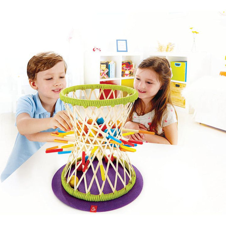 Can you remove a stick without dropping a ball? Easy does it! A Hape classic in a great design: Dexterity game with many different game variants Number of parts: 38 Dimensions: 23 x 23 x 23 cm Ages 3+