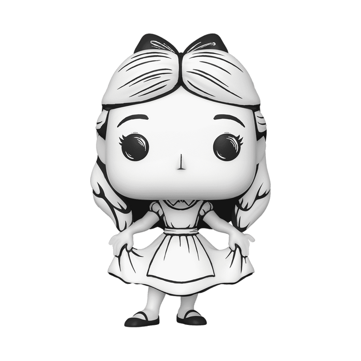Practice your curtsey with this exclusive Pop! Alice! In a charming, greyscale motif, a sketch of Pop! Alice has sprung off the page and is ready to take her place in your Alice in Wonderland collection. Vinyl figure is approximately 4.25 in (10.8 cm) tall.