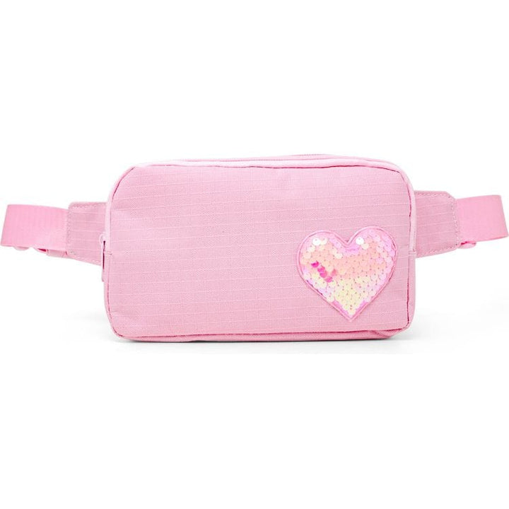 This trendy crossbody accessory features a cute sequin heart on the front, adding a touch of sparkle to any outfit. Designed with kids in mind, the bag boasts a secure zip-around closure, ensuring all their essentials stay safe and easily accessible. Adjustable belt strap Zip top closure Sequin heart patch   Dimension
