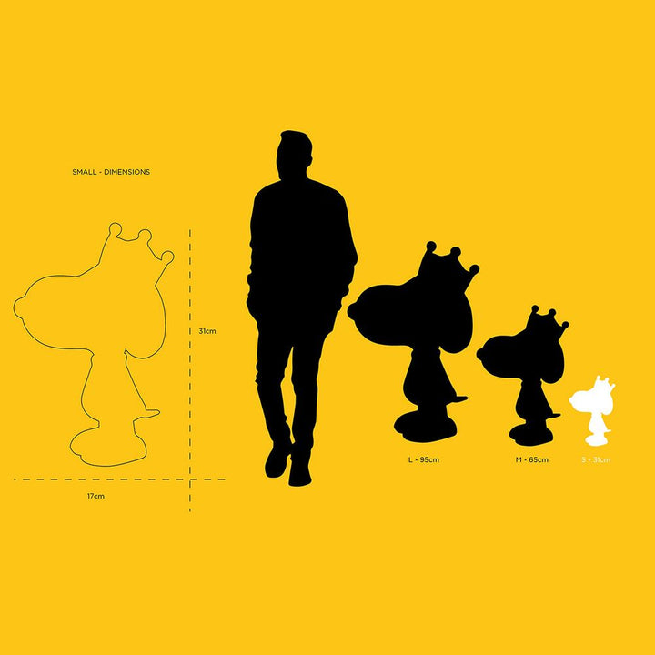 Add a touch of elegance to your collection with this exceptional figurine of Snoopy. This resin piece features the famous crowned beagle, celebrating his festive and joyful spirit. The figurine, available in black and gold, combines sophistication with playful charm, making it a true work of art. The detailed design