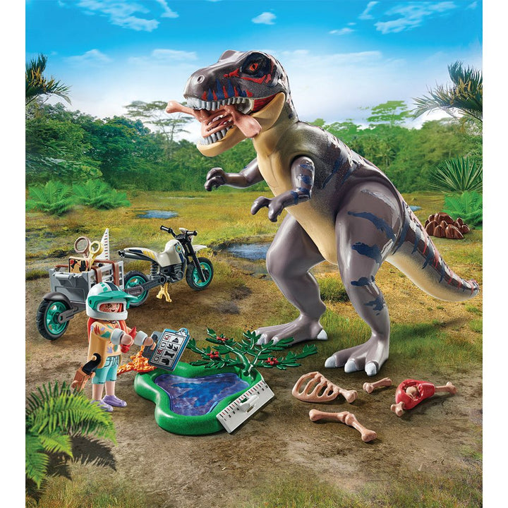 Experience extra-large dino fun with the T-Rex Hunt. The researcher embarks on an exciting quest to uncover traces of the Tyrannosaurus Rex. AS she journeys through the jungle on her motorcycle, she discovers bone fragments and a gigantic footprint. But when the original T-Rex suddenly appears before, the adventure rea