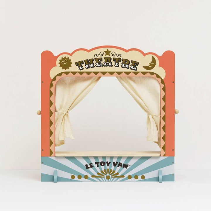 Where the imagination takes centre stage! This theatre brings timeless charm to any playroom or living space. Drawing back its show curtains, watch the magic come alive! Complete with a ticket window booth, chalkboard showtime board and sophisticated gold paint details, this is a toy for all. Inside this theatre transf