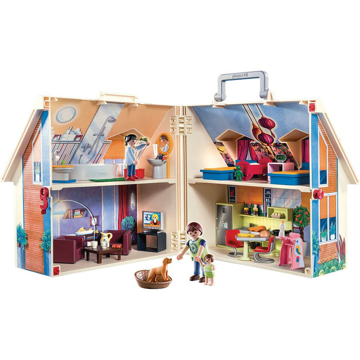Enjoy some fun on the go with the Take Along Dollhouse. This take-along case with latch opens up to reveal a spacious two-story house with four fully-furnished rooms. Gather around the table for a home-cooked meal in the fully-equipped kitchen, complete with pots and pans, food, dishes, and more. Relax on the couches a