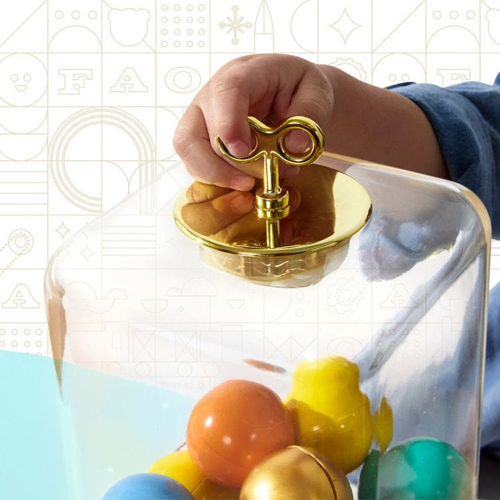 Step back in time with the F.A.O. Schwarz® Throwback Toys Mystery Vending Machine. This interactive toy is all about discovery and surprise – simply turn the knob to claim a capsule and uncover one of 12 mystery toys hidden within. The fun doesn't stop there – refill the capsules and repeat for unlimited play. This ret